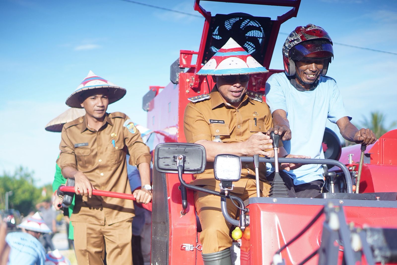 Penyerahan dan uji coba bantuan Combine Harvester, oleh bupati dan wakil bupati.