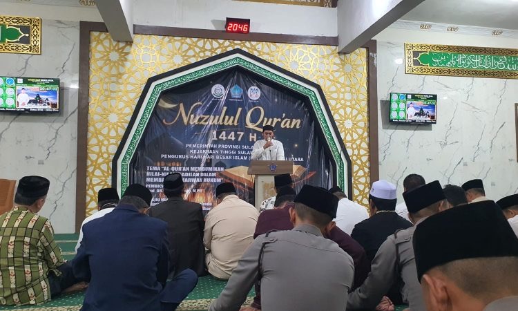 Kegiatan Nuzulul Qur’an 1447 Hijriah diselenggarakan oleh Pemerintah Provinsi (Pemprov) Sulawesi Utara (Sulut) bersama Kejaksaan Tinggi Sulut dan Pengurus Hari-Hari Besar Islam (PHBI) Sulut