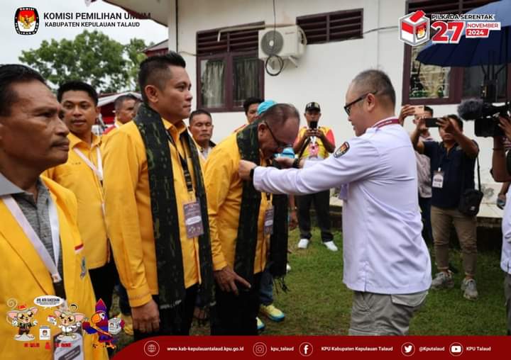 Bakal Pasangan Calon Bupati dan Wakil Bupati Talaud Yosa-ASB ini datang ke Kantor KPU Talaud sekira pukul 13.24 Wita diantar oleh ribuan massa pendukungnya dan disambut oleh Sekretaris KPU Jan Ch Kumaunang lewat penyematan selendang.