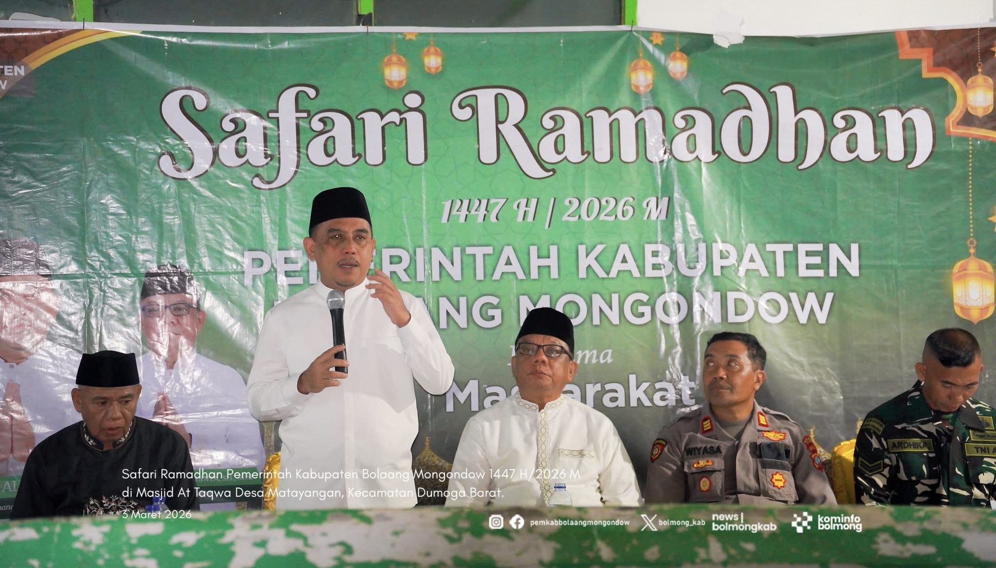DOTNEWS.ID | BOLMONG – Mengasuh ukhuwah antara pemerintah dan masyarakat, Pemerintah Kabupaten Bolaang Mongondow melaksanakan agenda Safari Ramadhan 1447 H / 2026 M di Desa Matayangan, Kecamatan Dumoga Barat. Kegiatan ini dipusatkan di Masjid At-Taqwa pada Selasa (3/3/2026).