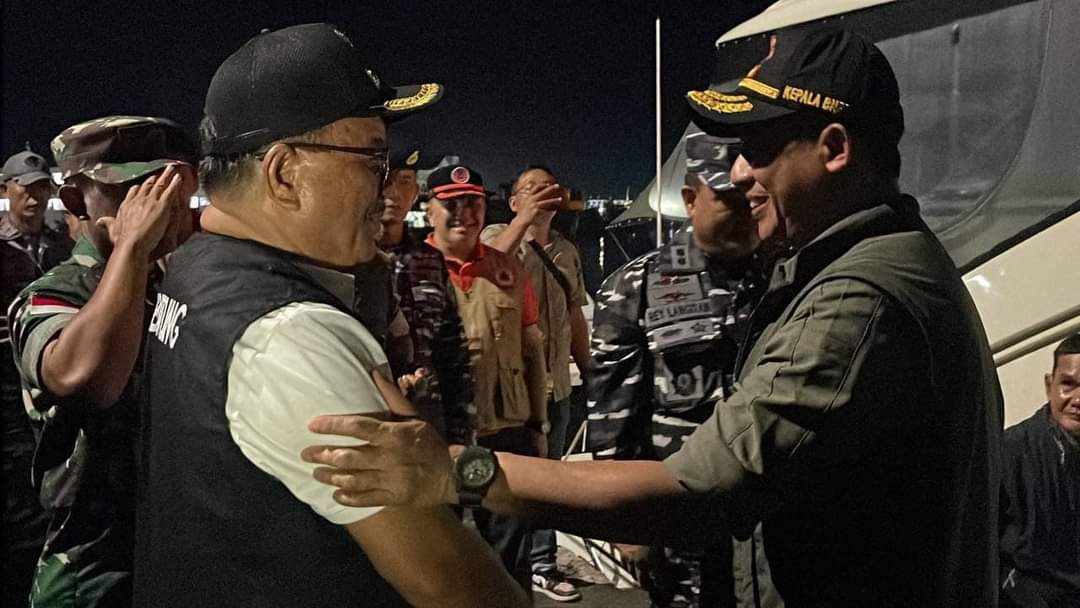 DOTNEWS.ID Bitung – Wali Kota Bitung Maurits Mantiri menyambut kedatangan Kepala Badan Nasional Penanggulangan Bencana (BNPB) Letjend TNI Suharyanto dan rombongan di Kota Bitung, Rabu Malam (1/5/2024).
