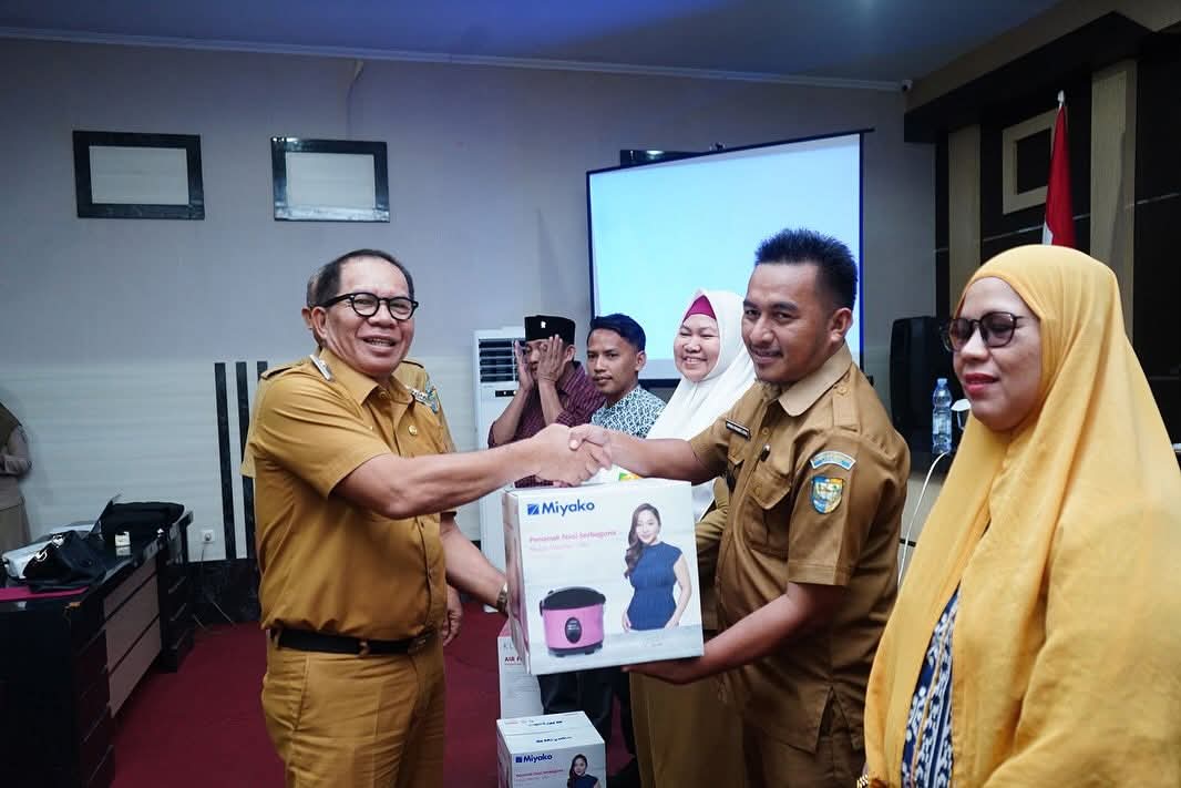 Rapat evaluasi PBB-P2 dan penyerahan door prize kepada pemerintah desa dalam penyerapan pembayaran pajak.