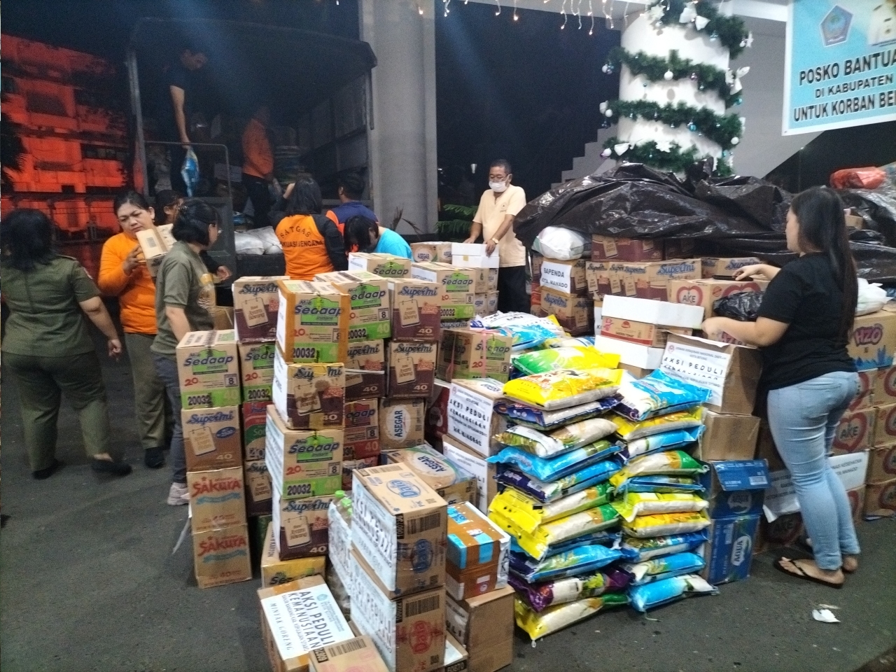“Bantuan yang disalurkan terdiri dari berbagai kebutuhan pokok, di antaranya air mineral, beras, mie instan, pakaian layak pakai, sepatu, ikan kaleng, gula, biskuit, minyak goreng, kasur, popok bayi, pembalut wanita, perlengkapan mandi, susu, serta perlengkapan bayi lainnya,” kata Altin.