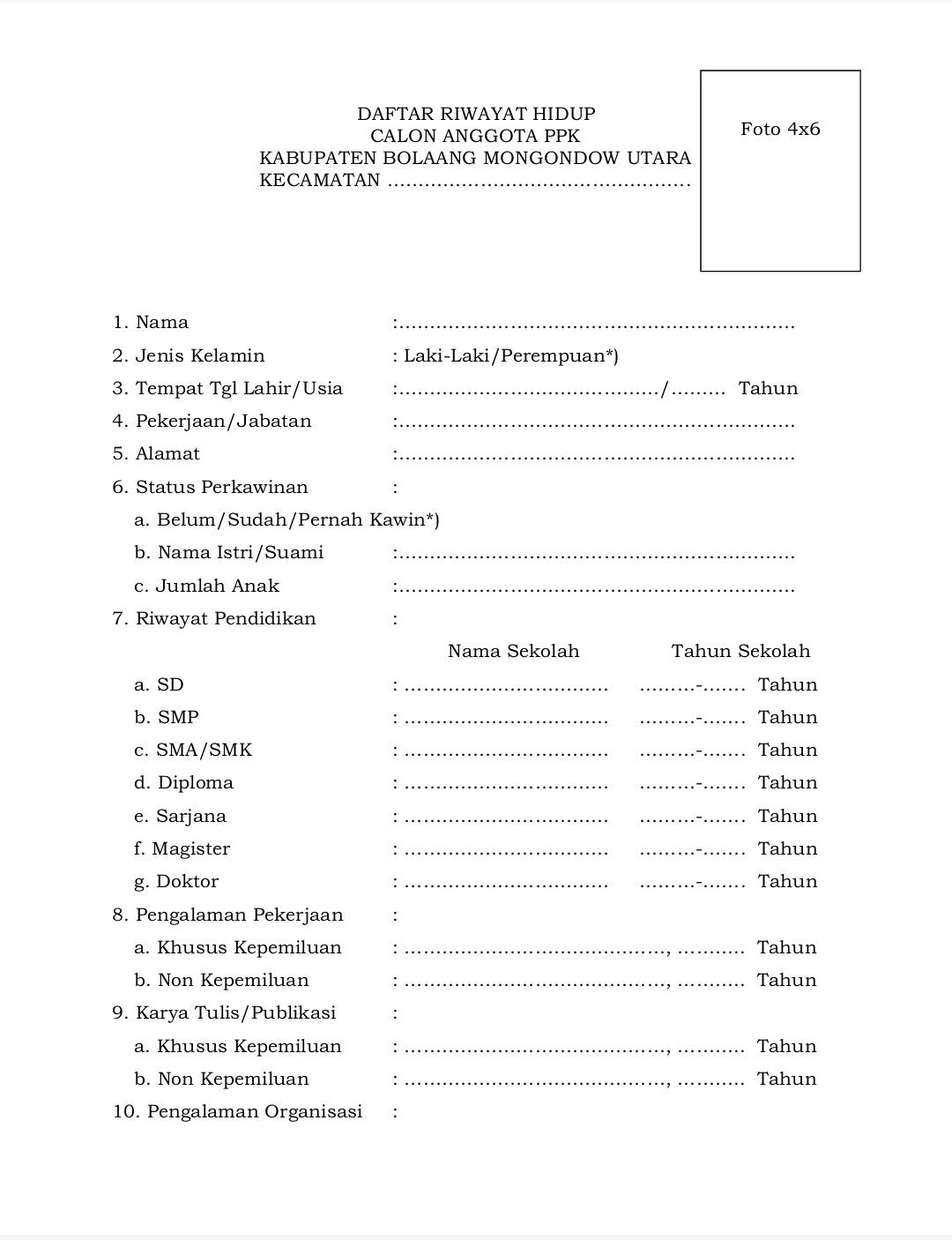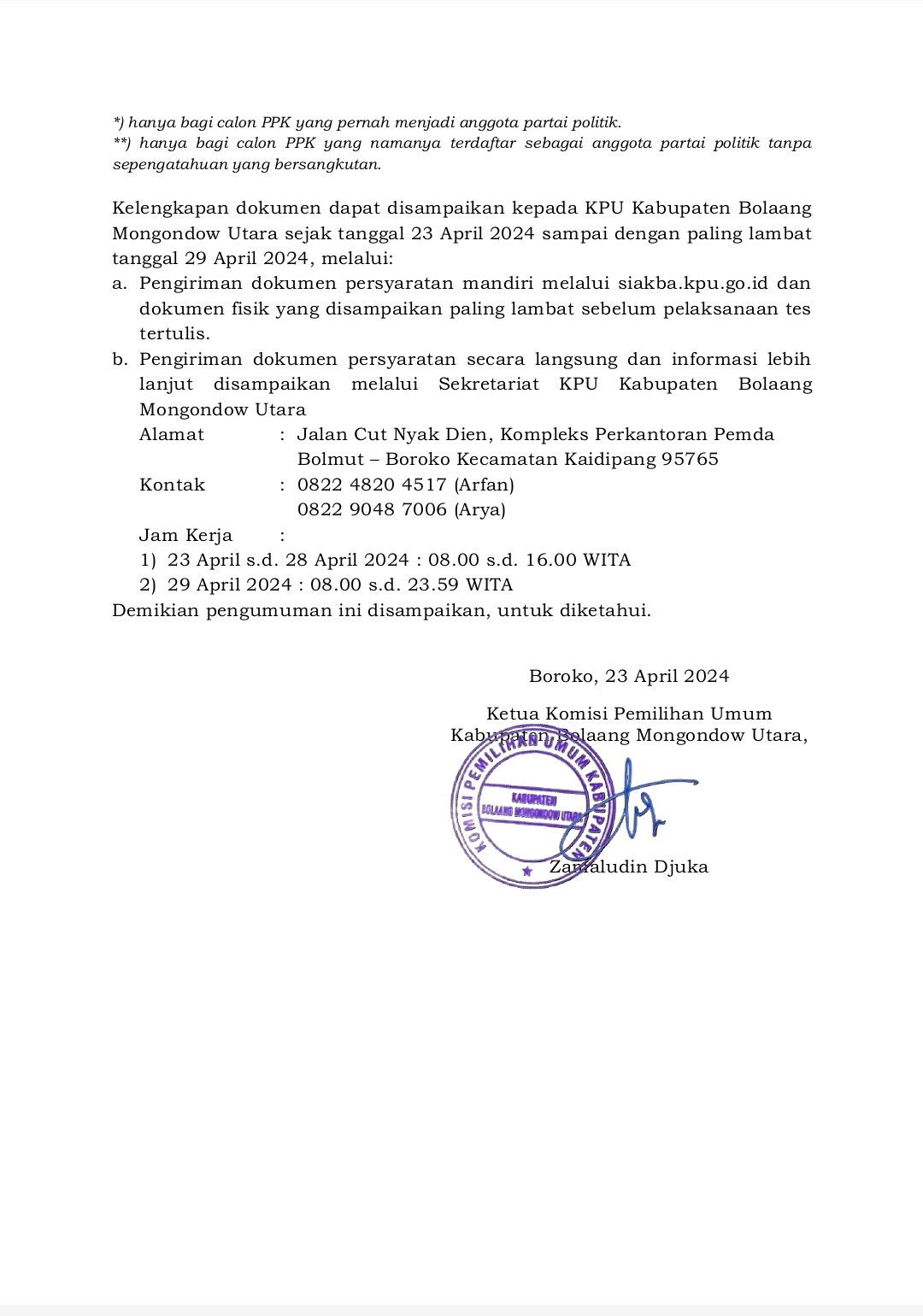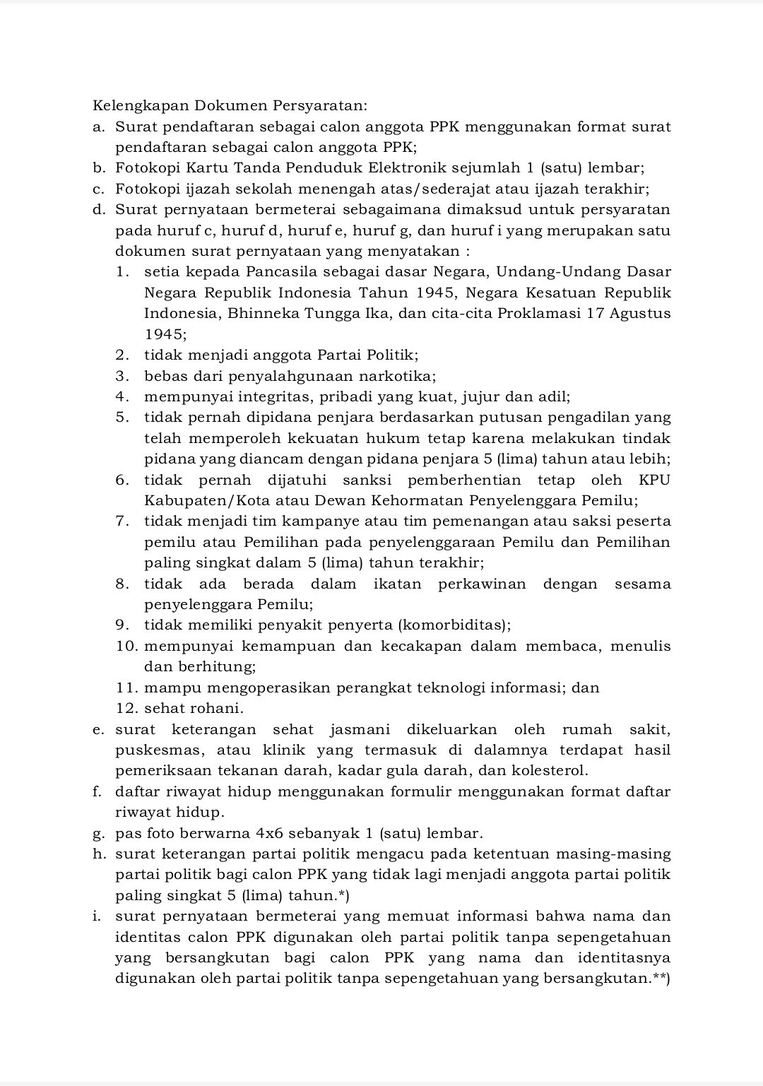Berikut syarat pengumuman perekrutan PPK Pilkada serentak Kabupaten Bolmut tahun 2024 yang dikeluarkan KPUD Bolmut: