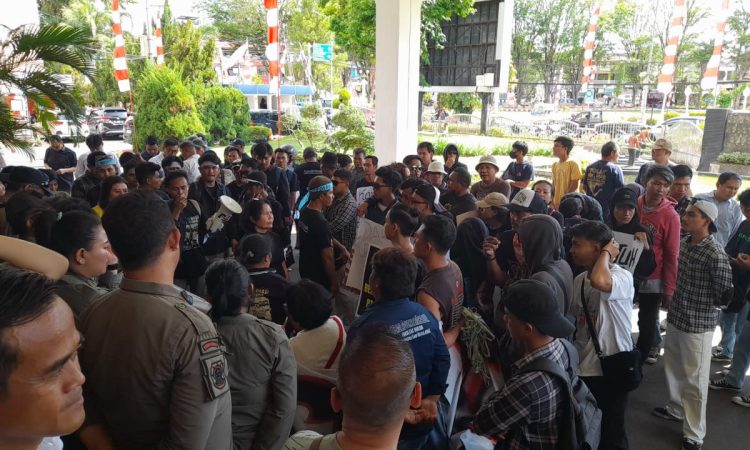 Unjuk rasa yang berlangsung di depan Kantor Wali Kota Manado ini diikuti oleh ratusan warga yang datang dari berbagai pulau di sekitar Manado, Senin (26/8/2024).
