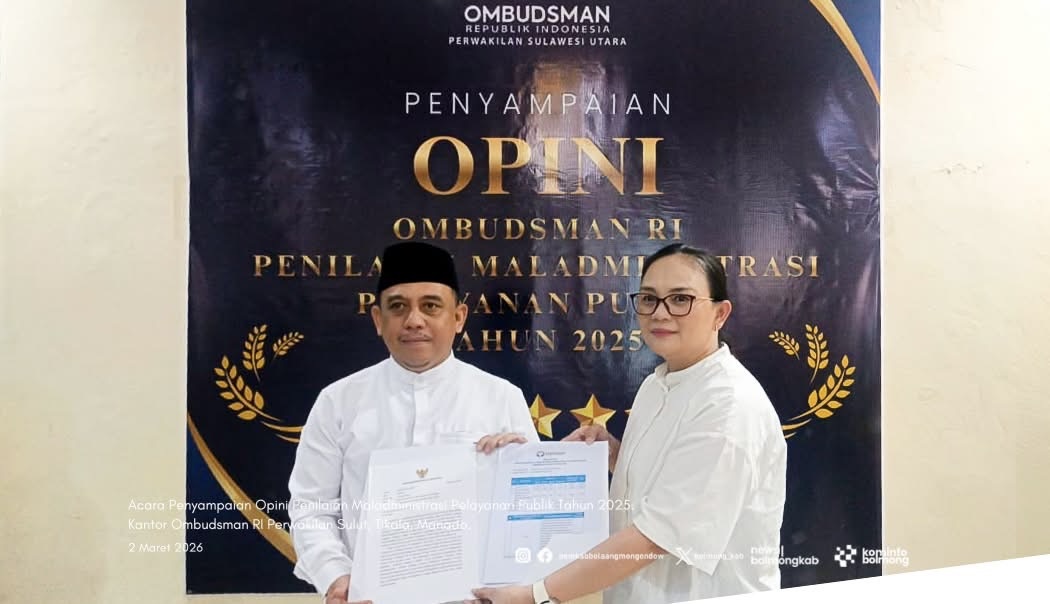 DOTNEWS.ID | MANADO – Pemerintah Kabupaten Bolaang Mongondow (Bolmong) mengukuhkan posisinya sebagai pionir pelayanan publik terbaik di Sulawesi Utara. Dalam acara penyampaian Opini Penilaian Maladministrasi Pelayanan Publik Tahun 2025, Bolmong berhasil meraih predikat Opini Kategori Kualitas Tinggi Tanpa Maladministrasi dengan nilai akhir 85,18.