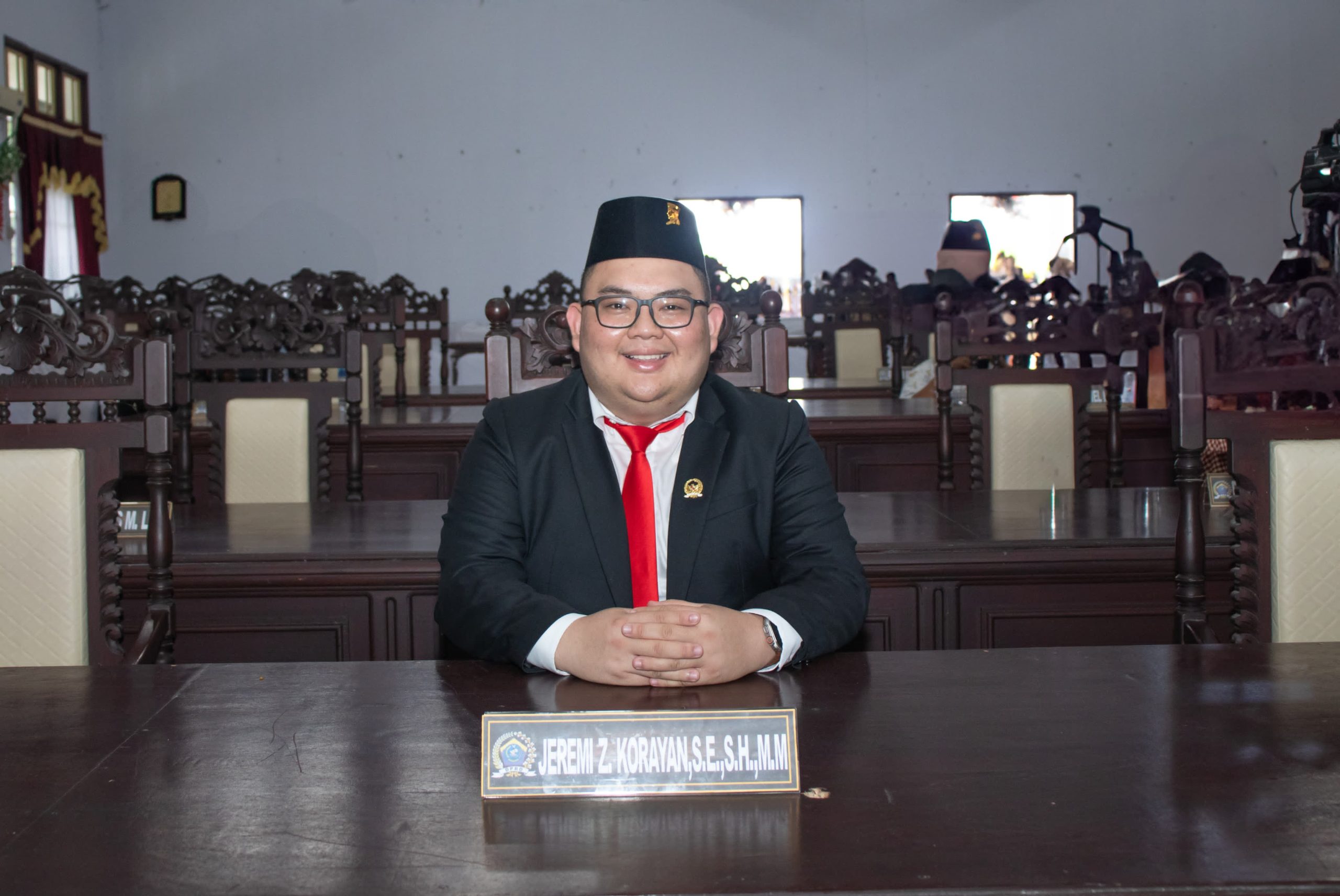 Jeremi Zefanya Korayan, SE, SH, MM anggota DPRD yang dilantik, diketahui seorang legislator muda dari Partai PDI P Jeremi berhasil terpilih dari Daerah Pemilihan (Dapil) 1, yang dikenal sebagai “zona neraka” karena persaingannya yang ketat. Kemenangan Jeremi di dapil yang penuh tantangan ini menjadi bukti bahwa generasi muda mampu bersaing di panggung politik.