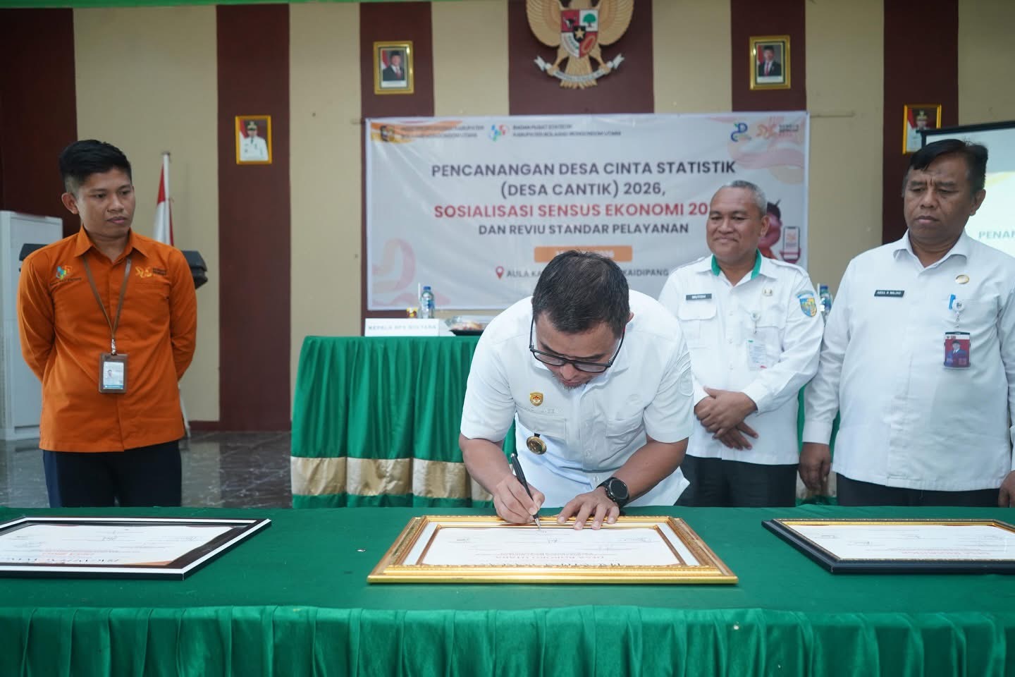 Pada kesempatan tersebut bupati dan kepala BPS menandatangani sekaligus menyerahkan piagam pencanangan sebagai desa cinta statistik tahun 2026 di Kabupaten Bolmut kepada Desa Boroko Utara, Inomunga dan Desa Bigo.