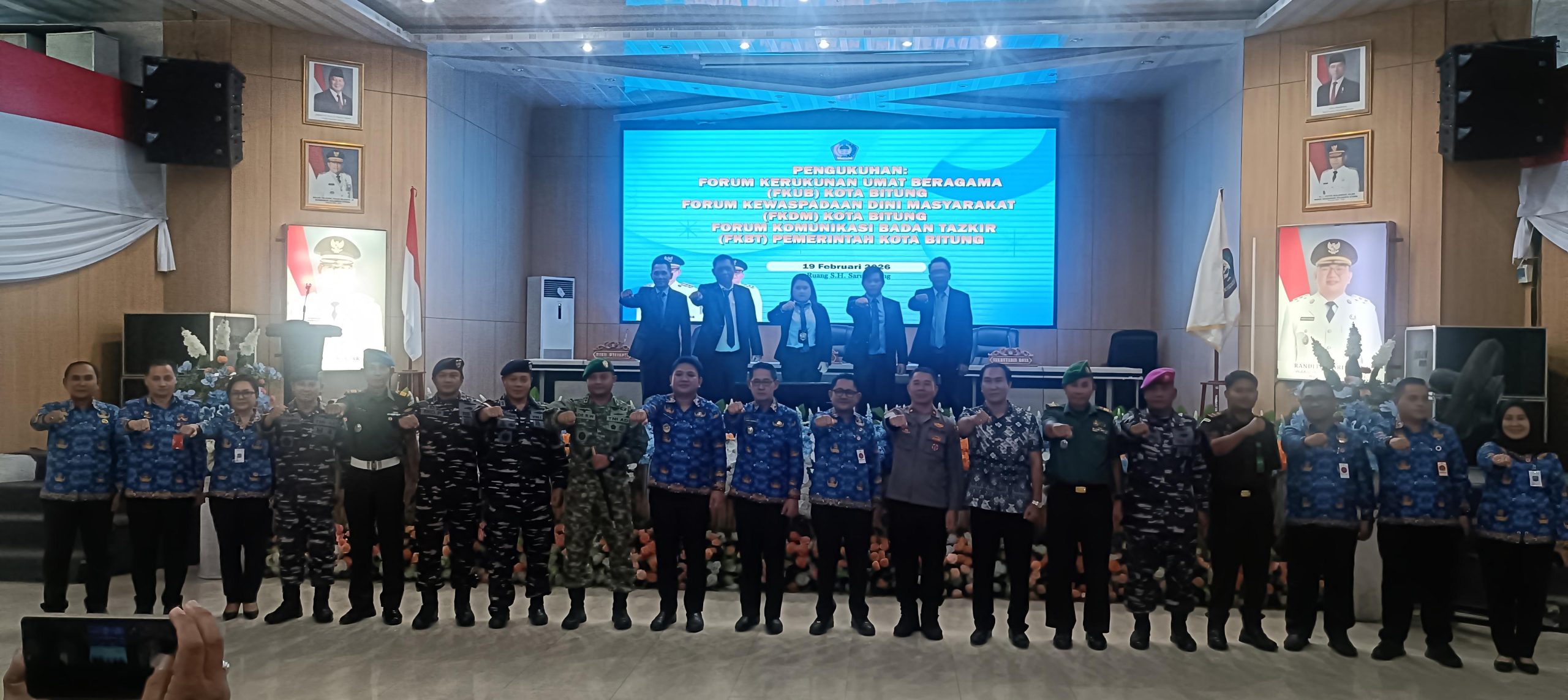 DOTNEW.ID | BITUNG – Pemerintah Kota Bitung resmi mengukuhkan Forum Kerukunan Umat Beragama (FKUB), Forum Kewaspadaan Dini Masyarakat (FKDM), serta Pengurus Badan Tazkir Pemerintah Kota Bitung, Kamis (19/02/2026). Kegiatan tersebut berlangsung di Ruang S. H. Sarundajang.
