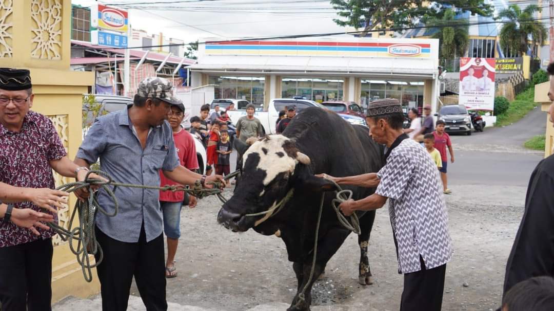 DOTNEWS.ID Bitung – Wali Kota Bitung Ir Maurits Mantiri M.M menyerahkan bantuan Kemasyarakatan Presiden Berupa Hewan kurban Sapi jenis Limosin, dalam Rangka Hari Raya Idul Adha 1445 H tahun 2024.