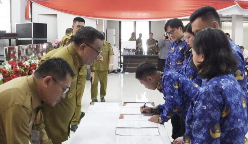 DOTNEWS.ID Bitung – Dalam rangka mengisi kekosongan Formasi Pegawai Pemerintah Dengan Perjanjian Kerja (PPPK) di lingkungan Pemkot Bitung. Walikota Ir Maurits Mantiri MM, melaksanakan penyerahan surat keputusan pengangkatan dan penyerahan perjanjian kerja PPPK Kota Bitung Tahun Anggaran 2023.